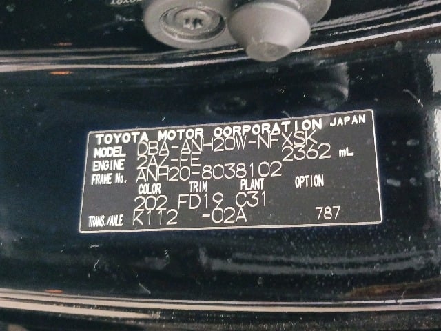 | CHASSIS NO. | ANH20-8038102 |