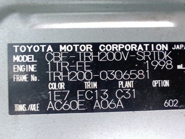 CHASSIS NO. | TRH200-0306581 |