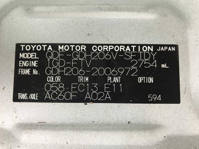 | CHASSIS NO. | GDH206-2006972 |