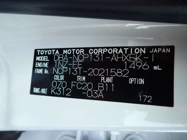CHASSIS NO. | NCP131-2021582 |