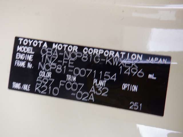 CHASSIS NO. | NCP81-0071154 |