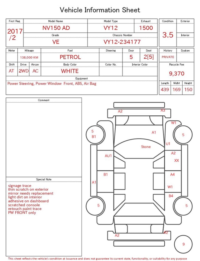 | CHASSIS NO. | VY12-234177 |