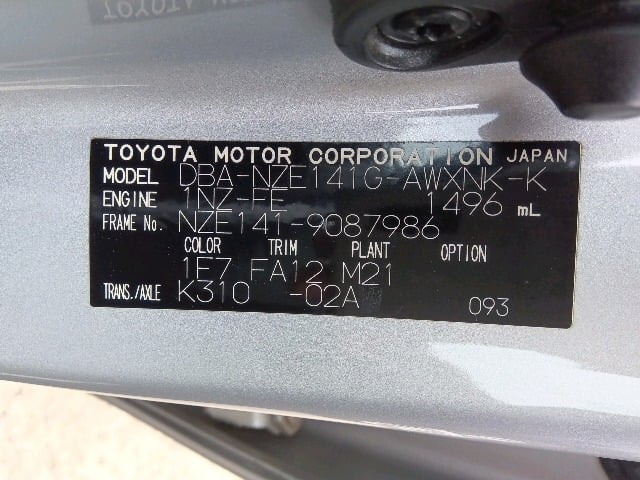 CHASSIS NO. | NZE141-9087986 |