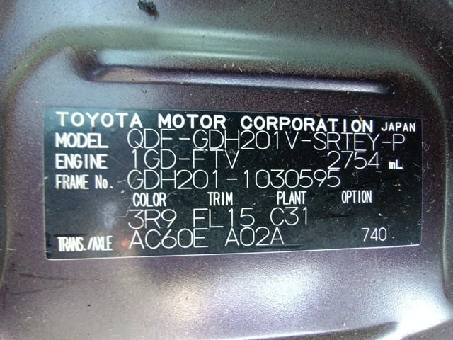 CHASSIS NO. | GDH201-1030595 |