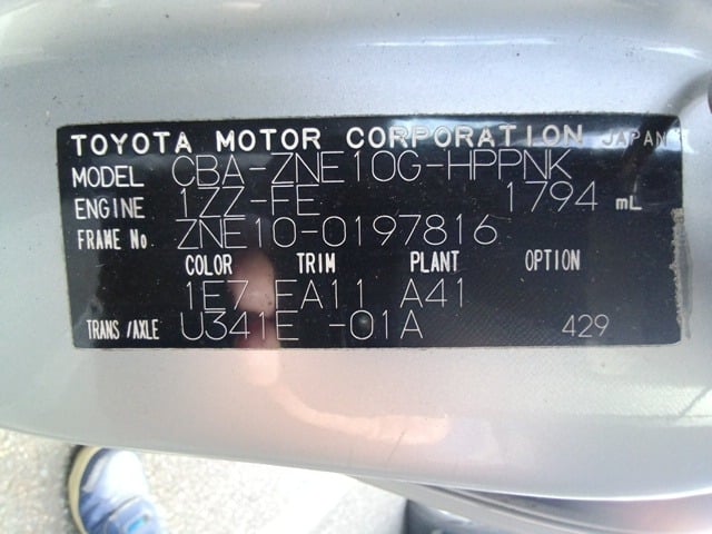 | CHASSIS NO. | ZNE10-0197816 |