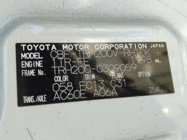 | CHASSIS NO. | TRH200-0309059 |