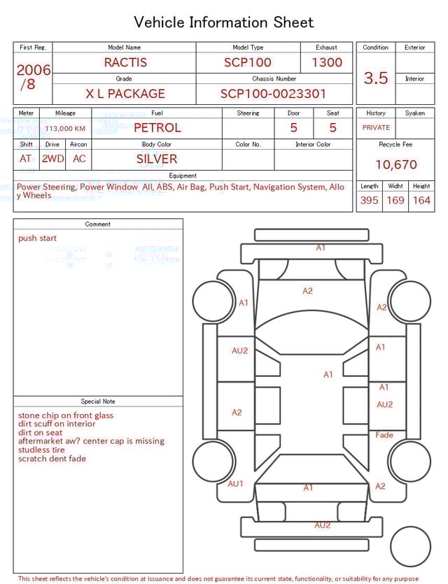 | CHASSIS NO. | SCP100-0023301 |