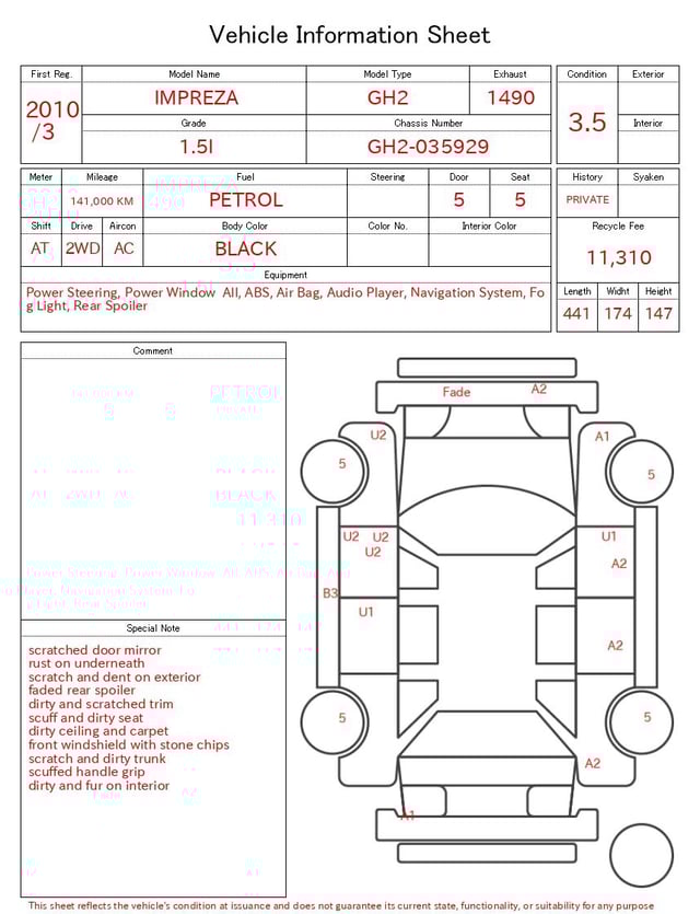 | Model | IMPREZA |
