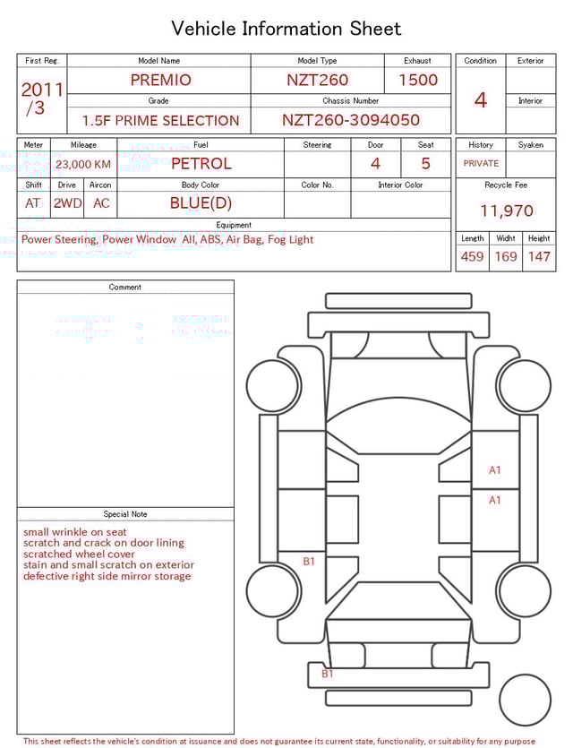 | CHASSIS NO. | NZT260-3094050 |