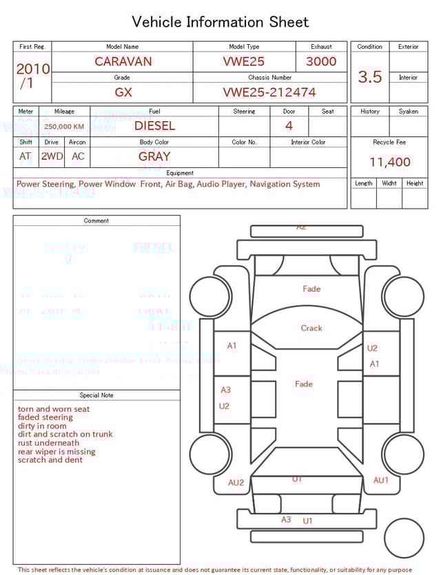 | CHASSIS NO. | VWE25-212474 |