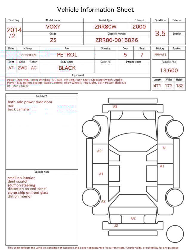 | CHASSIS NO. | ZRR80-0015826 |