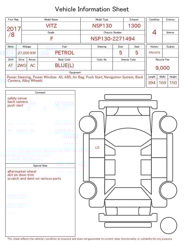 CHASSIS NO. | NSP130-2271494 |