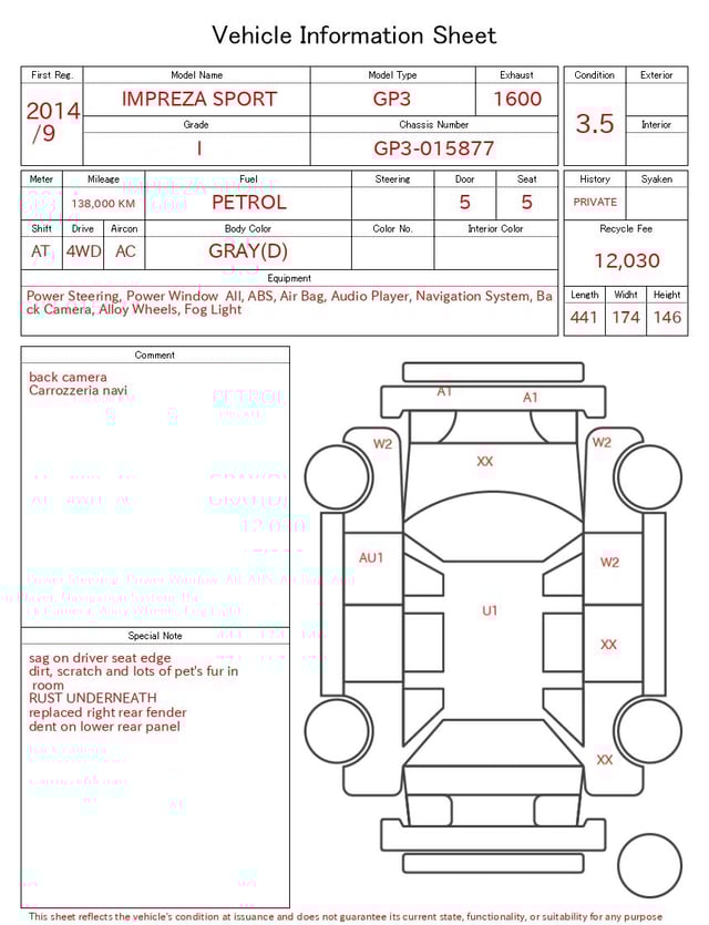 | Model | IMPREZA SPORT |