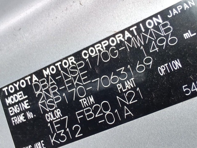 CHASSIS NO. | NSP170-7063169 |