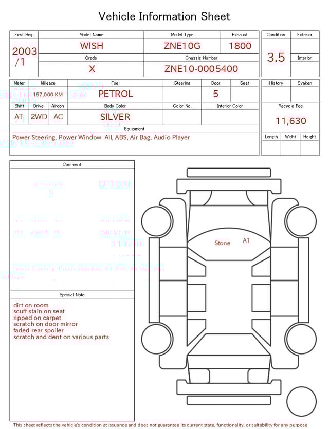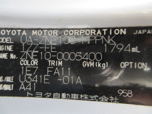 | CHASSIS NO. | ZNE10-0005400 |