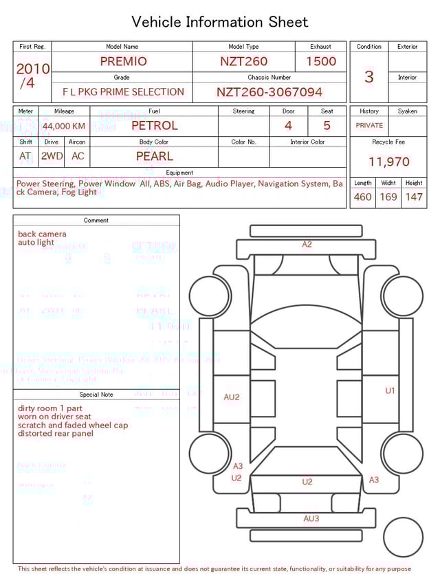 | CHASSIS NO. | NZT260-3067094 |