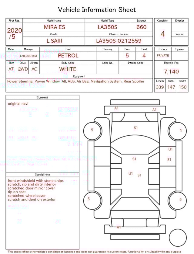 | CHASSIS NO. | LA350S-0212559 |