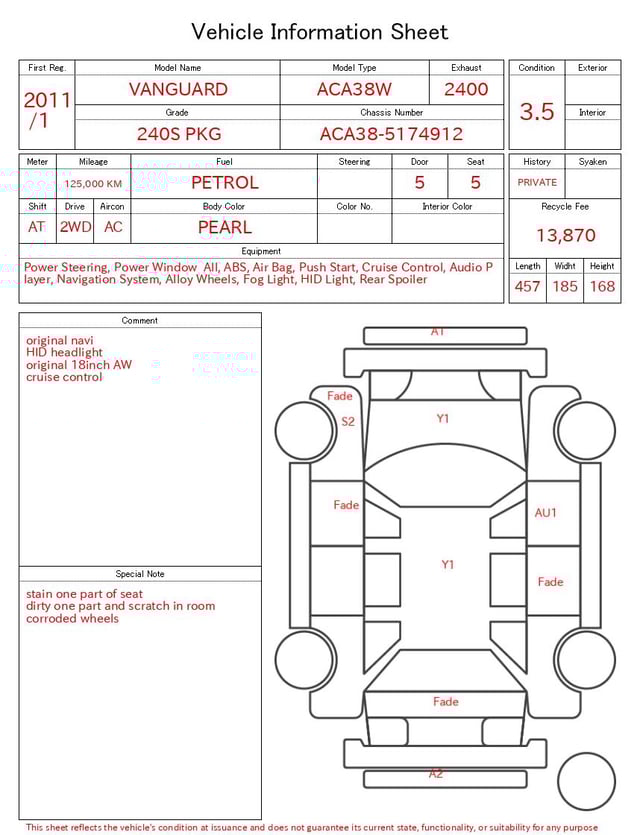 | CHASSIS NO. | ACA38-5174912 |