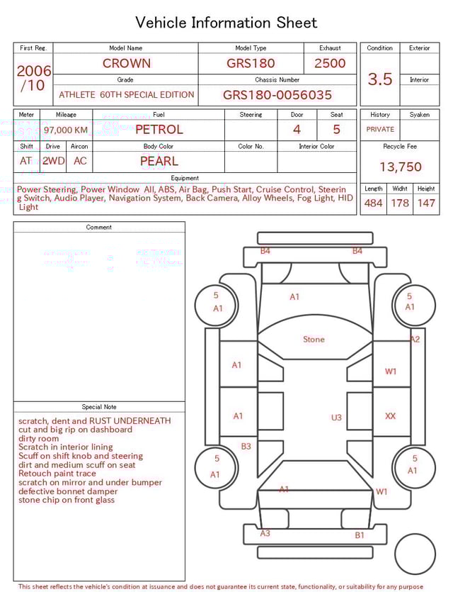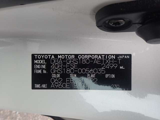 CHASSIS NO. | GRS180-0056035 |