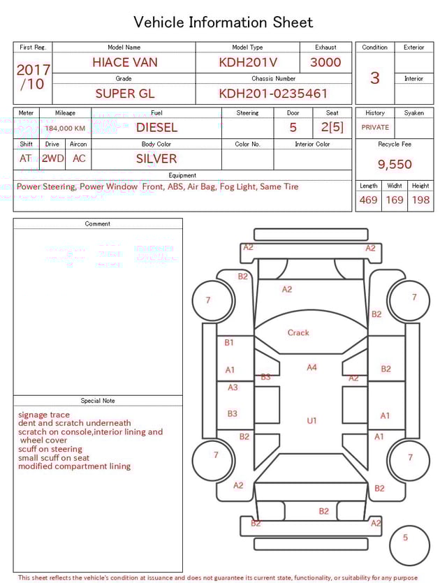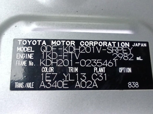 | CHASSIS NO. | KDH201-0235461 |