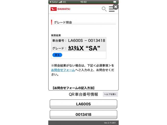 | CHASSIS NO. | LA600S-0013418 |