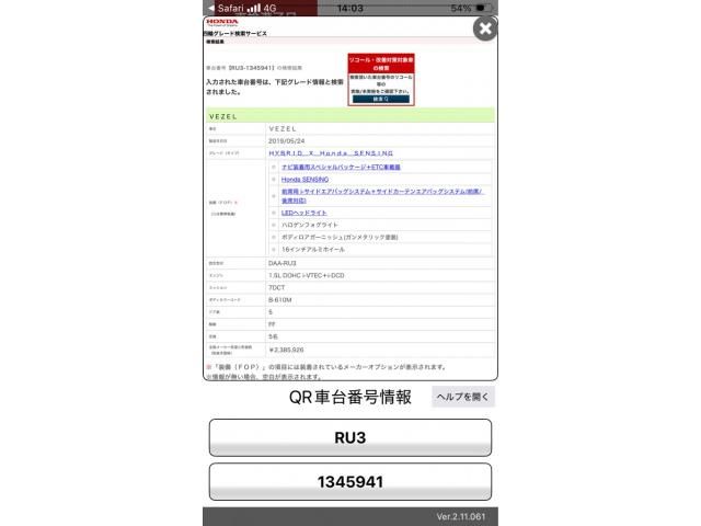 | CHASSIS NO. | RU3-1345941 |