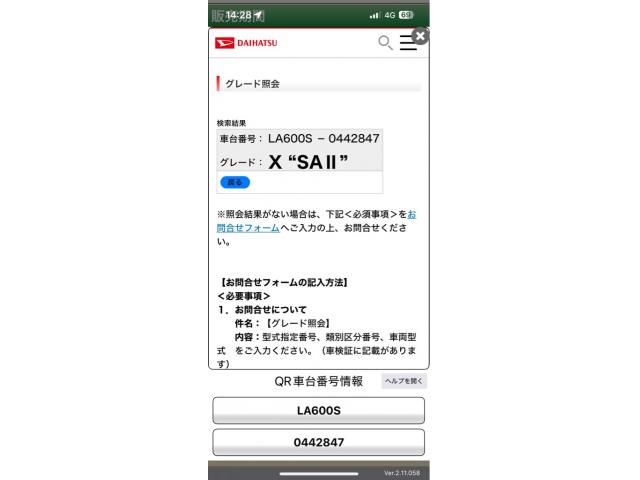 | CHASSIS NO. | LA600S-0442847 |