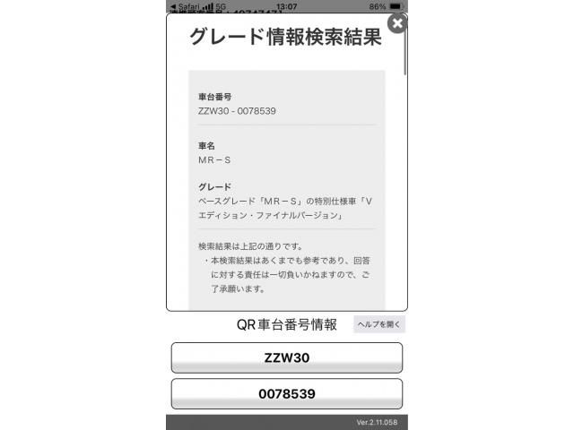 | CHASSIS NO. | ZZW30-0078539 |