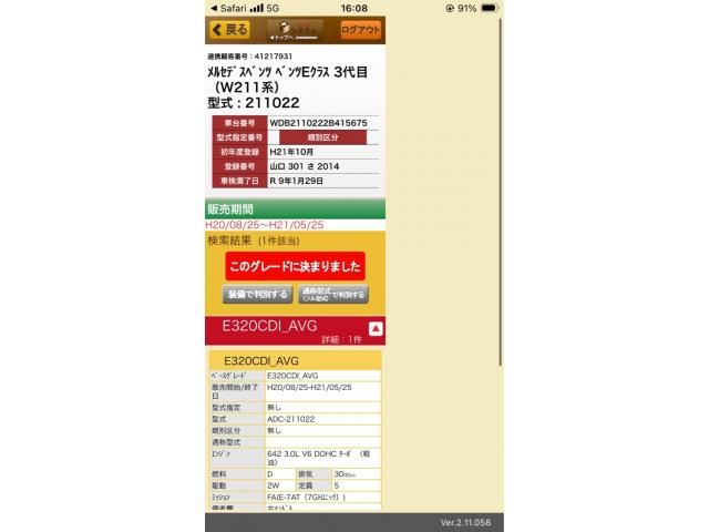 | Model | MERCEDES BENZ E class sedan |