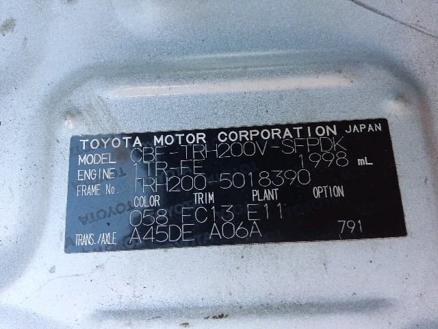 | CHASSIS NO. | TRH200-5018390 |