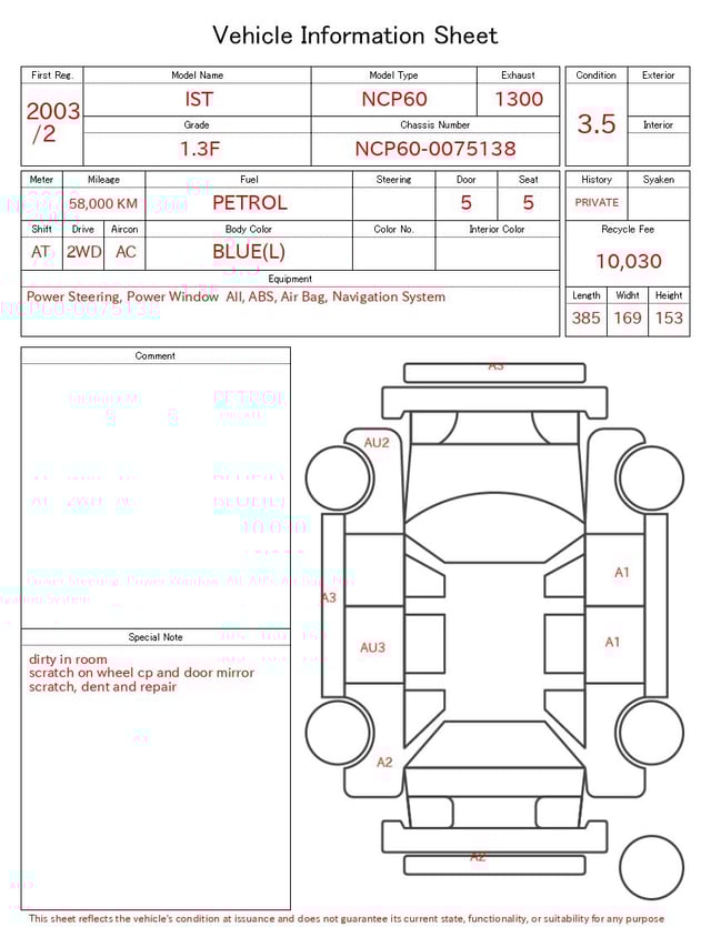 CHASSIS NO. | NCP60-0075138 |