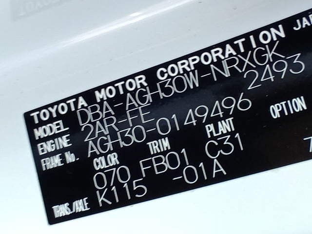 CHASSIS NO. | AGH30-0149496 |