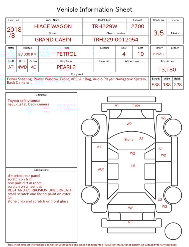 CHASSIS NO. | TRH229-0012054 |