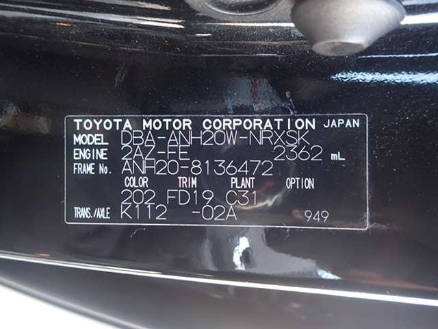 CHASSIS NO. | ANH20-8136472 |