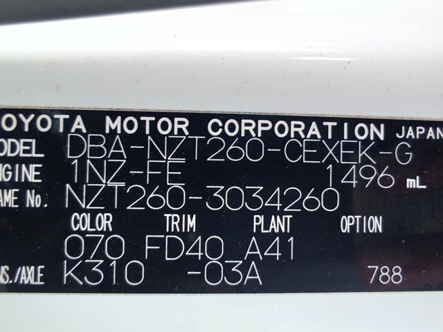 CHASSIS NO. | NZT260-3034260 |