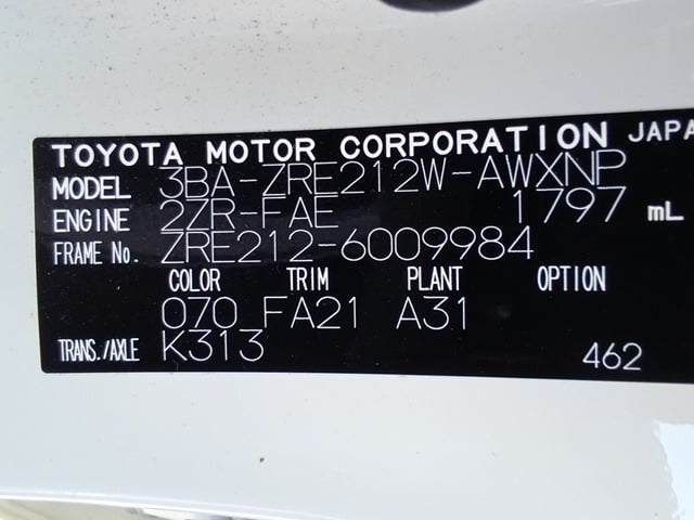 CHASSIS NO. | ZRE212-6009984 |