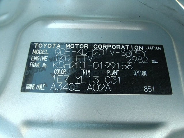 CHASSIS NO. | KDH201-0199156 |
