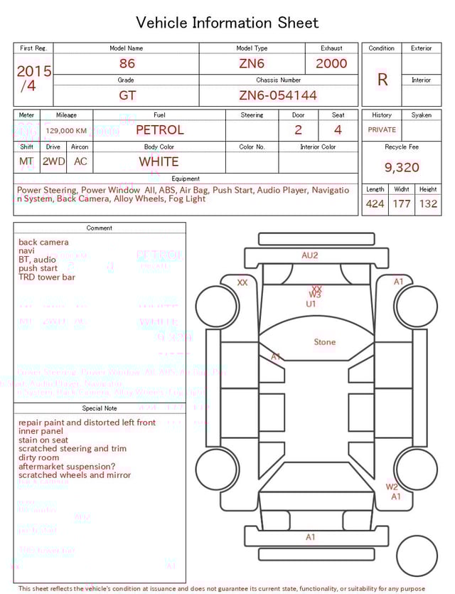 CHASSIS NO. | ZN6-054144 |
