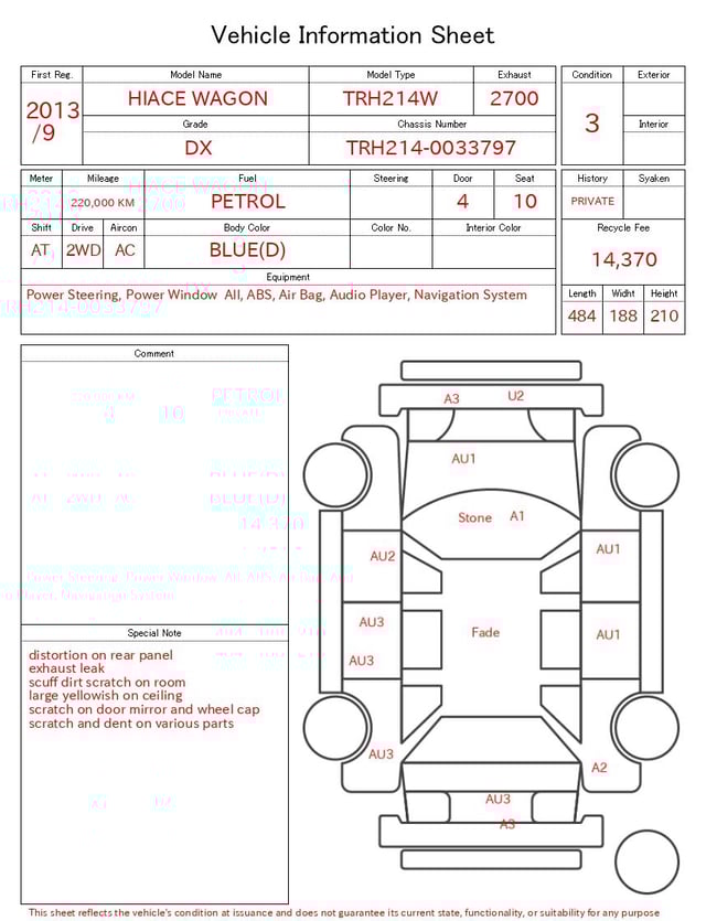 CHASSIS NO. | TRH214-0033797 |