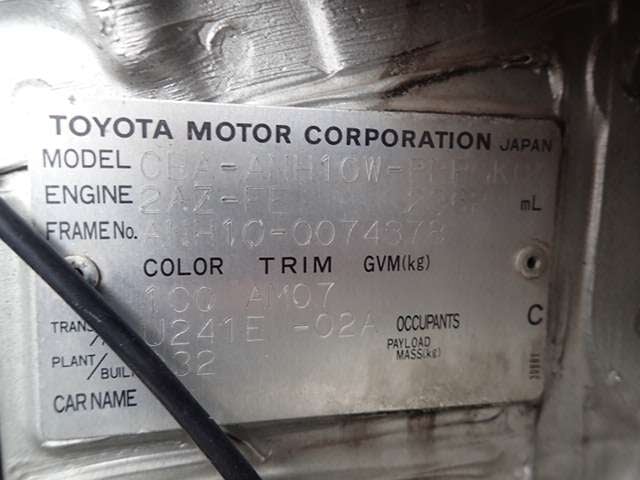CHASSIS NO. | ANH10-0074378 |