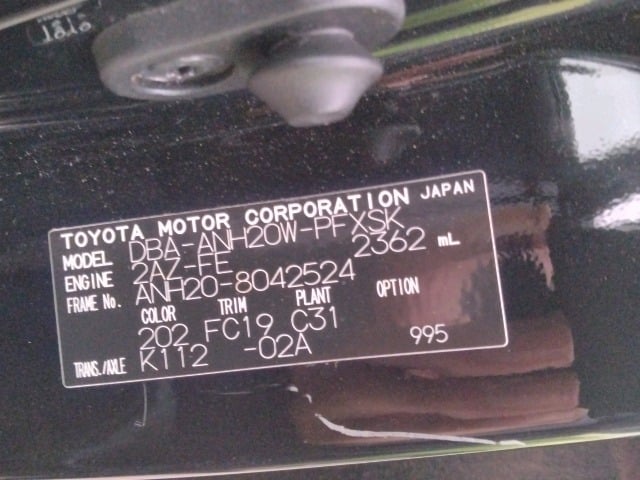 CHASSIS NO. | ANH20-8042524 |
