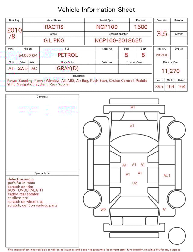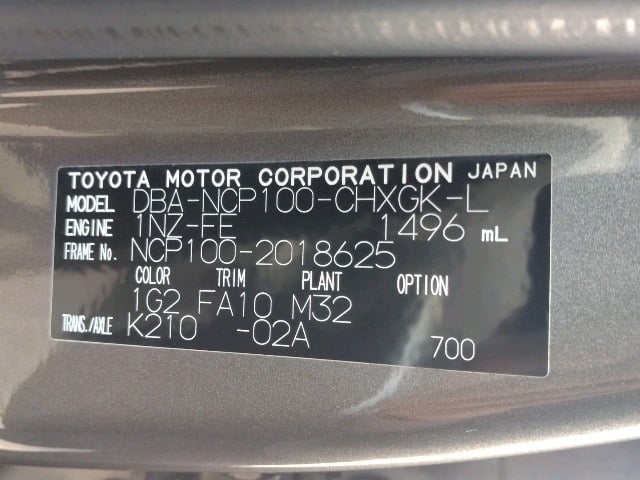 CHASSIS NO. | NCP100-2018625 |