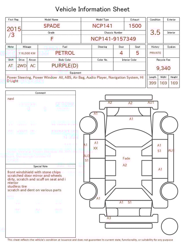 CHASSIS NO. | NCP141-9157349 |
