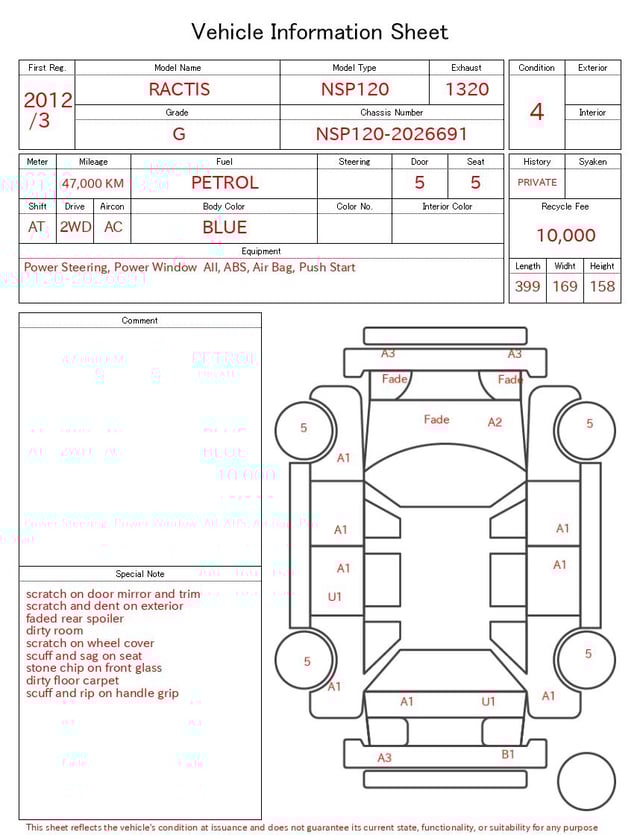 CHASSIS NO. | NSP120-2026691 |
