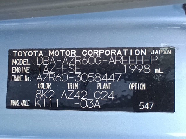 CHASSIS NO. | AZR60-3058447 |