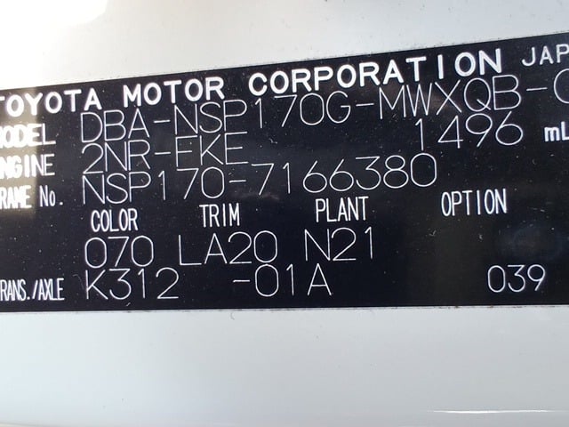 CHASSIS NO. | NSP170-7166380 |