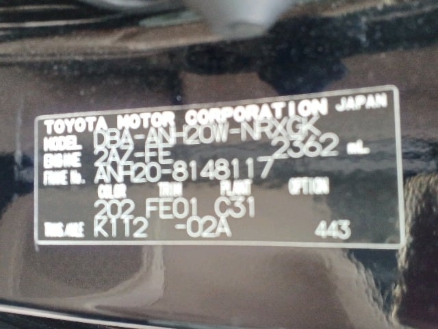 CHASSIS NO. | ANH20-8148117 |