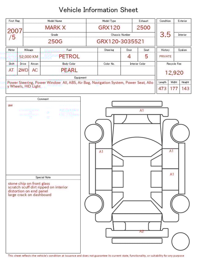 CHASSIS NO. | GRX120-3035521 |
