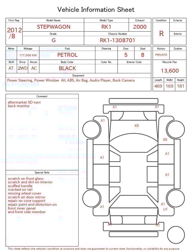 CHASSIS NO. | RK1-1308701 |