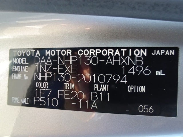 CHASSIS NO. | NHP130-2010794 |
